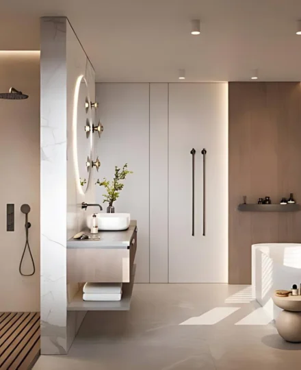 High-end finishes, stylish tile, premium fixtures. Blend aesthetics, functionality, and long-lasting quality.