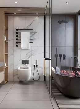 Choose glass doors, slip-resistant flooring, grab bars, rainfall showerheads, custom tiles, or built-in shelves.